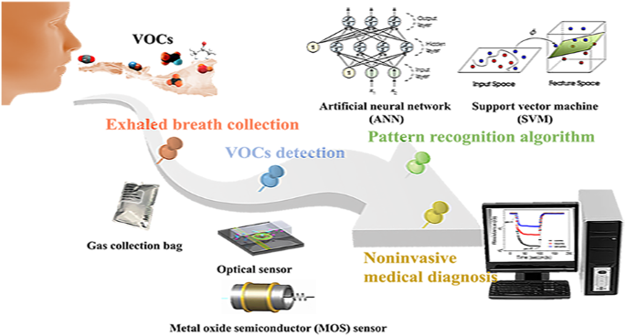 機(jī)器學(xué)習(xí)與模式識(shí)別技術(shù)賦予傳感器解析復(fù)雜氣體 “指紋” 的能力。浙江大學(xué)鄔建敏團(tuán)隊(duì)基于石墨烯基嗅覺(jué)傳感器陣列,通過(guò)機(jī)器學(xué)習(xí)分析信號(hào),結(jié)合 RF、Lasso、SVM 加權(quán)融合模型,提升了呼吸道感染類型檢測(cè)的魯棒性與準(zhǔn)確性;瑞典林雪平大學(xué)與國(guó)家法醫(yī)學(xué)委員會(huì)團(tuán)隊(duì)采用 32 個(gè) MOS 氣體傳感器陣列,結(jié)合自適應(yīng)機(jī)器學(xué)習(xí)算法,實(shí)現(xiàn)了法醫(yī)鑒定中 VOC 的非侵入、實(shí)時(shí)分析。