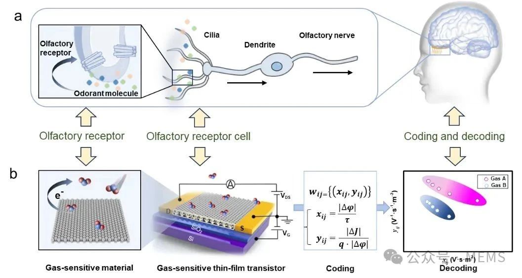 在抗干擾與精準(zhǔn)檢測(cè)層面,算法有效破解了復(fù)雜環(huán)境的信號(hào)混疊難題。中國(guó)科學(xué)院安光所張志榮團(tuán)隊(duì)針對(duì)多組分氣體光譜混疊問(wèn)題,首創(chuàng)光譜自適應(yīng)變換非負(fù)最小二乘算法(SAT-NNLS),通過(guò)智能校正光譜漂移與插值降噪,突破高濃度甲烷干擾,使 CO 檢測(cè)誤差≤0.1 ppm、C₂H₄誤差≤0.61 ppm,可提前 2-3 天預(yù)警自燃風(fēng)險(xiǎn),目前已實(shí)現(xiàn)產(chǎn)業(yè)化;中國(guó)科學(xué)院聲學(xué)研究所王文團(tuán)隊(duì)則通過(guò)溫濕度補(bǔ)償與抑制算法,結(jié)合傳感陣列與模式識(shí)別,大幅提升傳感器抗干擾能力與識(shí)別準(zhǔn)確性。另外,華中科技大學(xué)的研究人員也提出了一種材料-算法協(xié)同優(yōu)化(MACO)方案,能夠?qū)崿F(xiàn)電子鼻中的甲醛定量檢測(cè)。