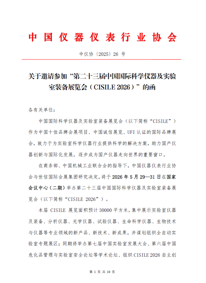 關(guān)于邀請參加“第二十三屆中國國際科學(xué)儀器及實驗室裝