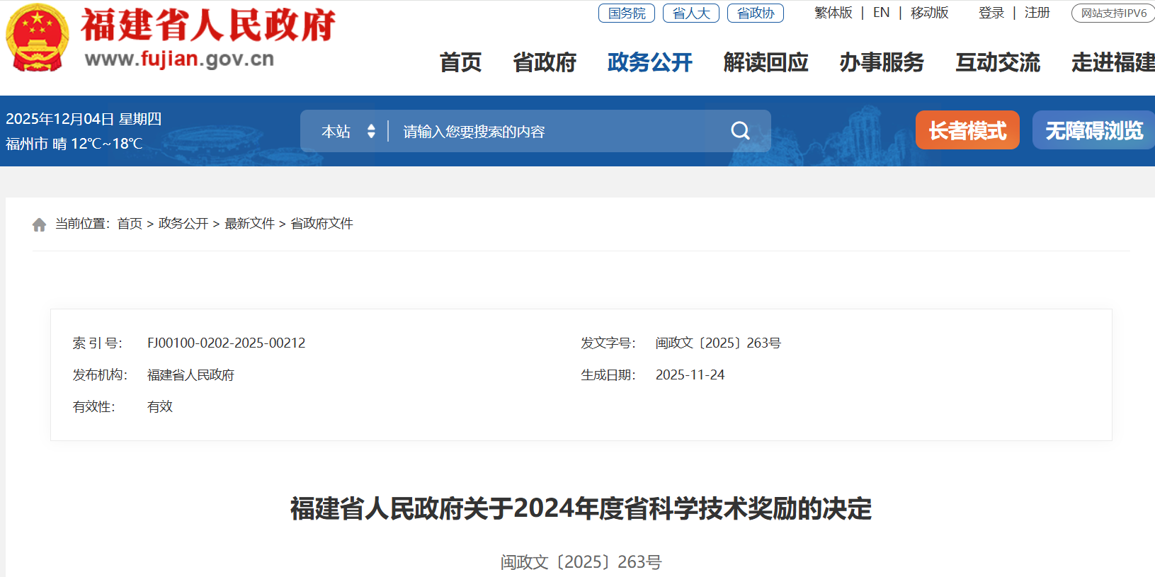 麥克奧迪光學榮獲2024年度福建省科學技術進步一等