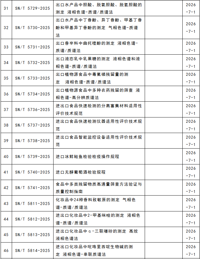 這117項行業(yè)標準涵蓋食品、化妝品、藥材等領域,涉及液相色譜串聯(lián)質譜法、液相色譜-質譜/質譜法、高效液相色譜法、電感耦合等離子體質譜法、近紅外光譜法、實時熒光PCR方法等檢測方法。