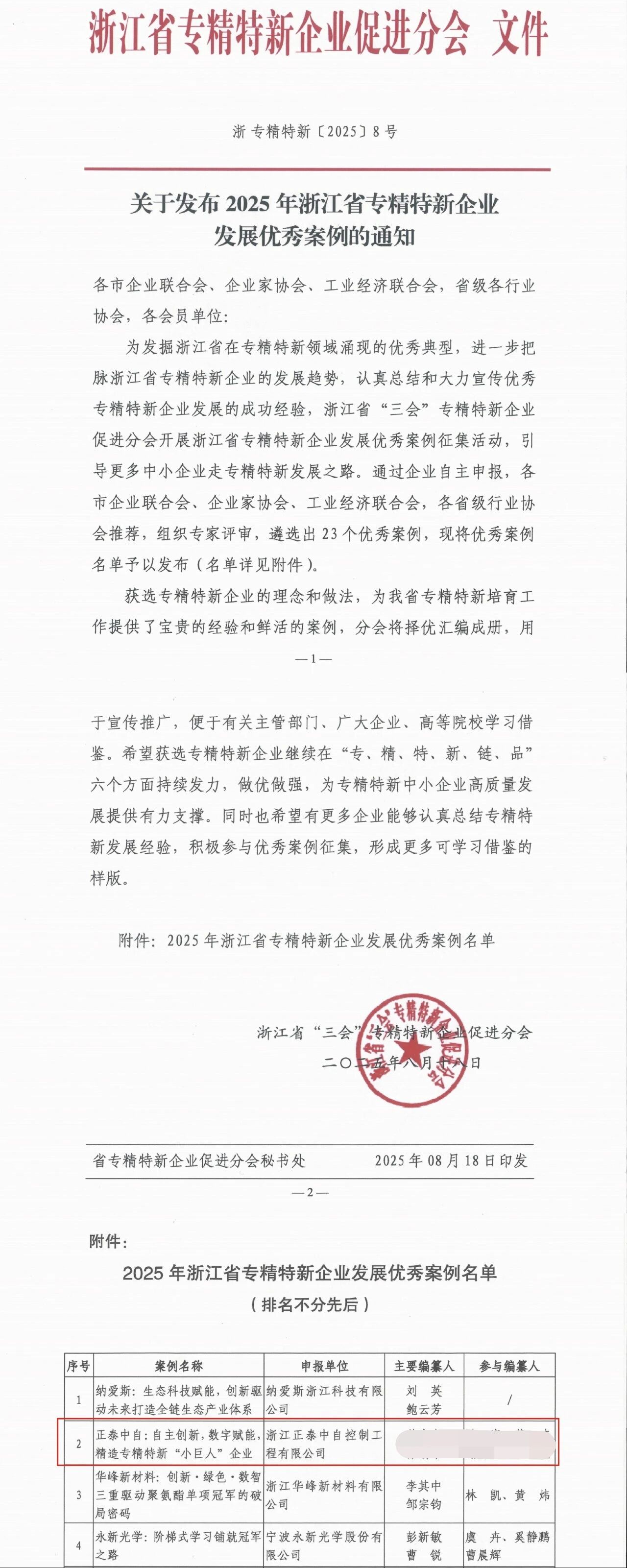 近日,浙江省“三會”專精特新企業(yè)促進分會正式發(fā)布2025年度浙江省專精特新發(fā)展優(yōu)秀案例名單。正泰中自憑借《自主創(chuàng)新,數(shù)字賦能,精造專精特新“小巨人”企業(yè)》案例脫穎而出,成功入選該名單,發(fā)展路徑與創(chuàng)新實踐獲得官方認(rèn)可與推介。