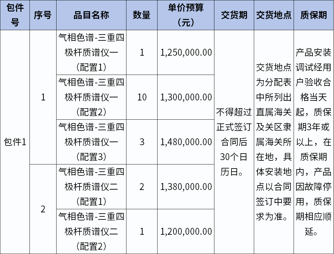 2265萬元,海關(guān)總署17臺套氣相色譜-三重四極桿