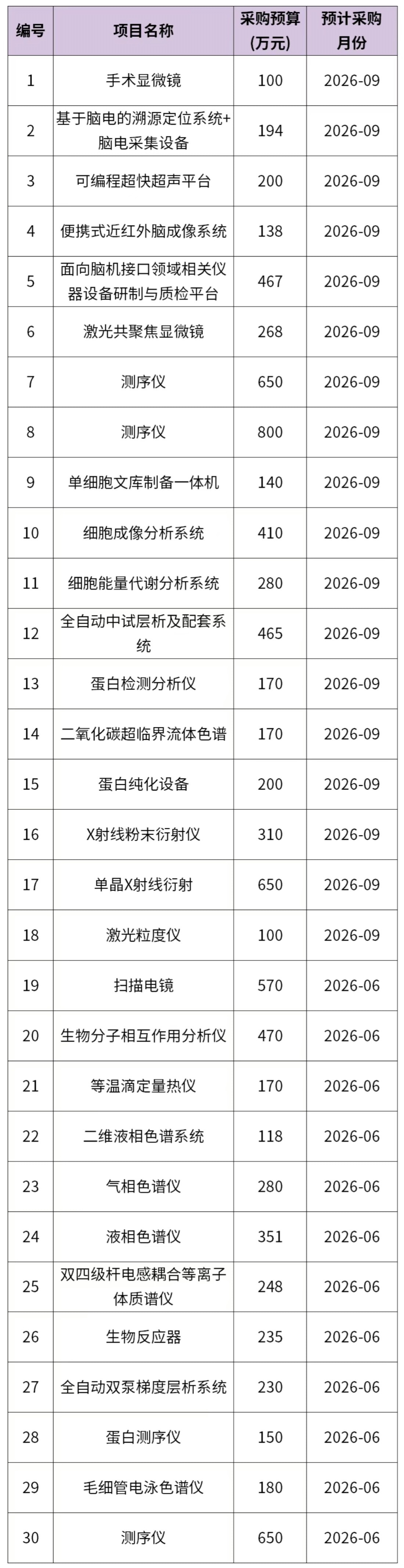南京醫(yī)科大學(xué)(本部)2026年2月(第2批)政府采購意向公告發(fā)布,計劃于2026年6月、9月購置手術(shù)顯微鏡、激光共聚焦顯微鏡、測序儀、蛋白純化設(shè)備、掃描電鏡、氣相色譜儀、液相色譜儀、雙四級桿電感耦合等離子體質(zhì)譜儀等儀器設(shè)備,預(yù)算總額9364萬元。